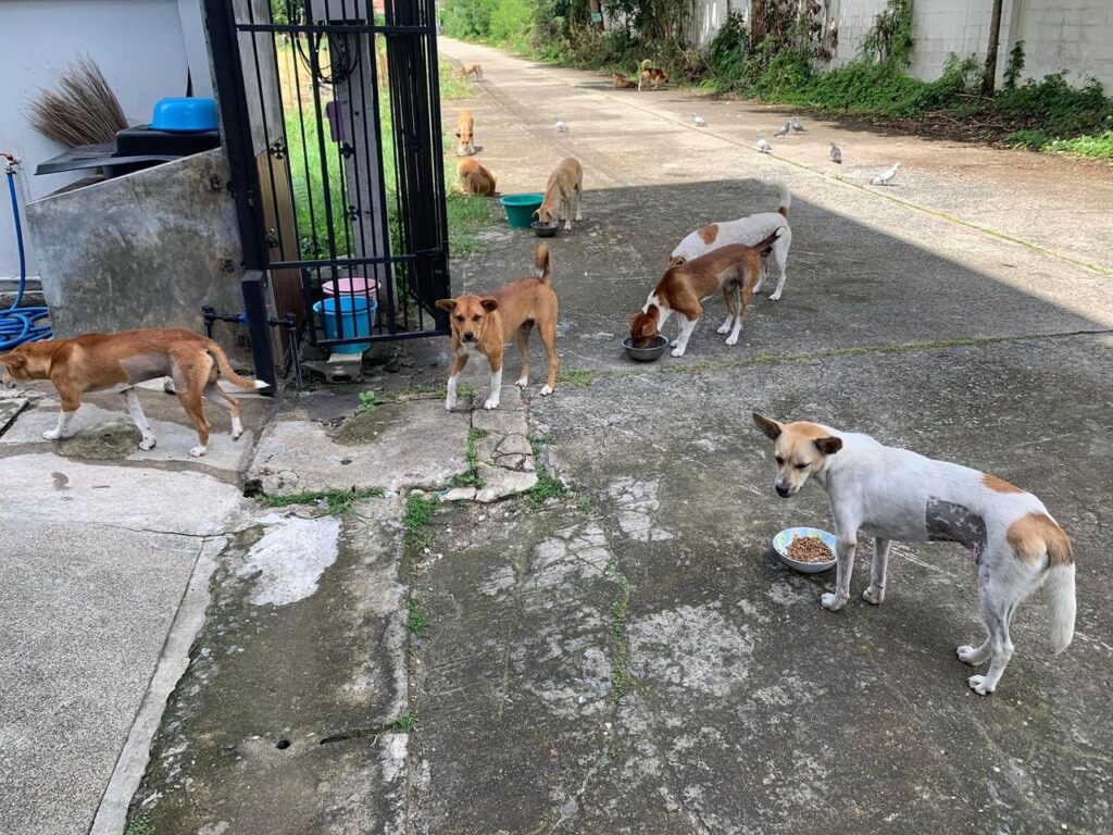 This photo shows the feral dogs in San Kamphaeng that we went and trapped at night and spayed the next day. One dog went to the clinic the following day since she was the last young female needing to be spayed on this road and was trapped after we finished our spay event ♥️